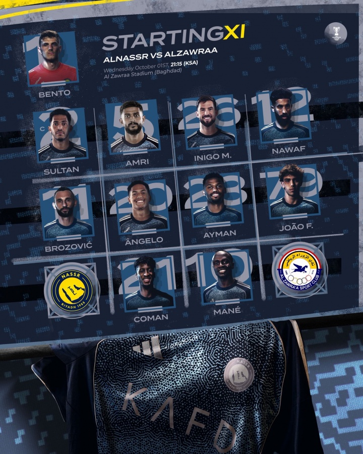 10月2日訊 北京時(shí)間凌晨2點(diǎn)15分,亞冠二級(jí)小組賽D組第2輪,利雅得勝利客場(chǎng)對(duì)陣伊拉克球隊(duì)扎瓦拉體育,賽前利雅得勝利公布了首發(fā)陣容,C羅迎來輪休,菲利克斯、科曼先發(fā),馬內(nèi)出戰(zhàn)。