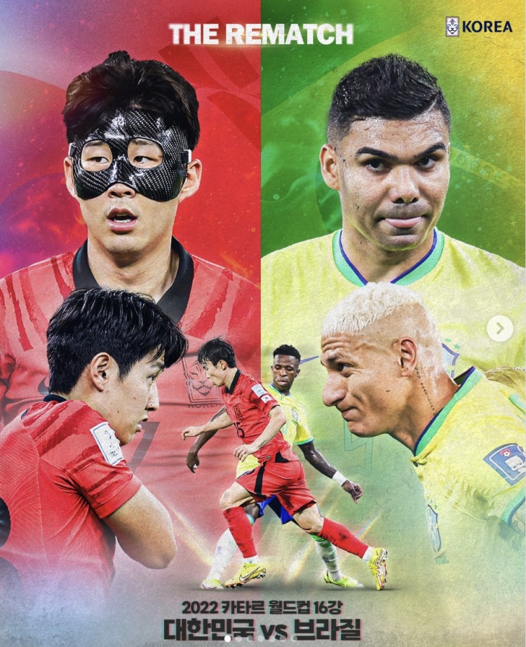 韓國隊交手巴西隊海報:孫興慜、李剛仁、維尼修斯、卡塞米羅出鏡